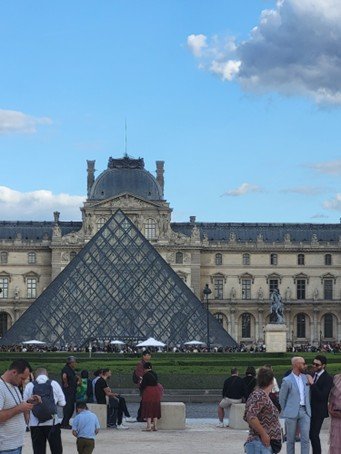 Na zakończenie dnia odwiedziliśmy okolice Luwru. Choć oglądaliśmy go jedynie z zewnątrz, budynek swoją okazałością nas zachwycił. Po dniu pełnym przeżyć udaliśmy się na wspólny posiłek w restauracji, a następnie wróciliśmy do apartamentów na odpoczynek.